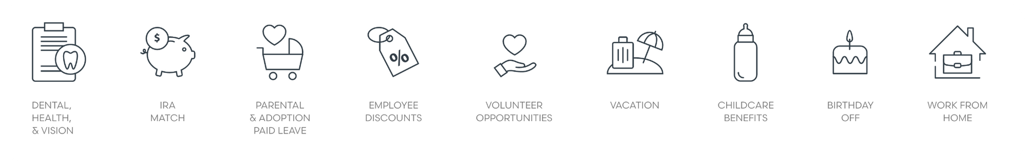 Team mushie cares about our customers, and mushie cares about our team. We offer a full benefits suite and some extra surprises to all full-time team members. Check out a few of our offerings below.